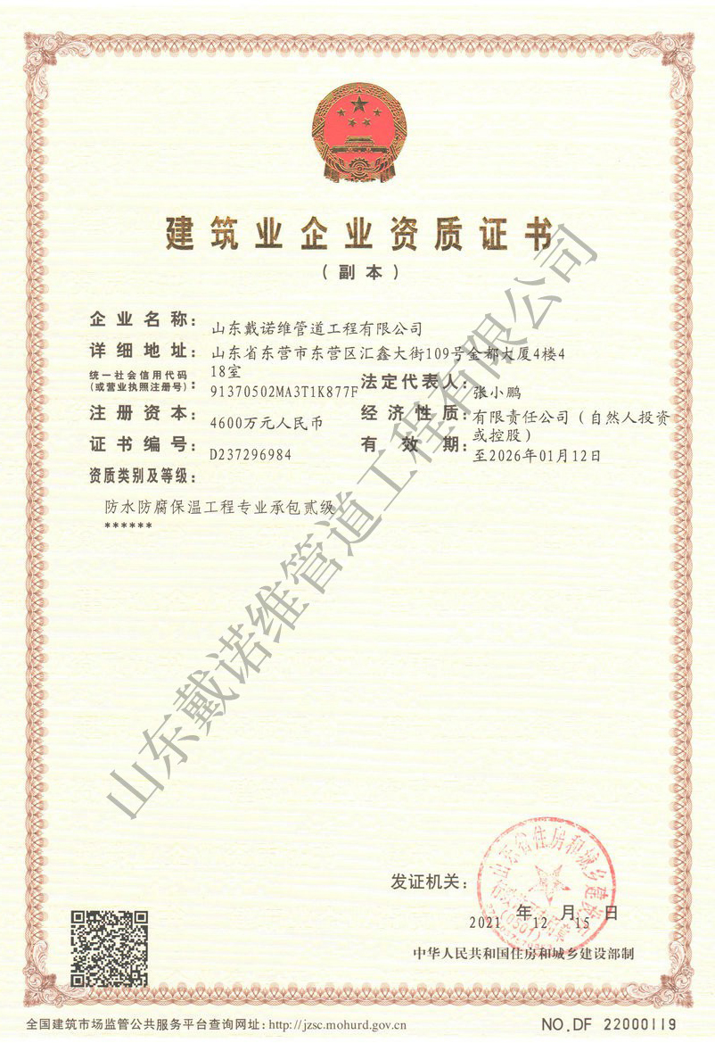 管道非開(kāi)挖修復(fù)工程服務(wù)企業(yè)資質(zhì)證書(shū)
