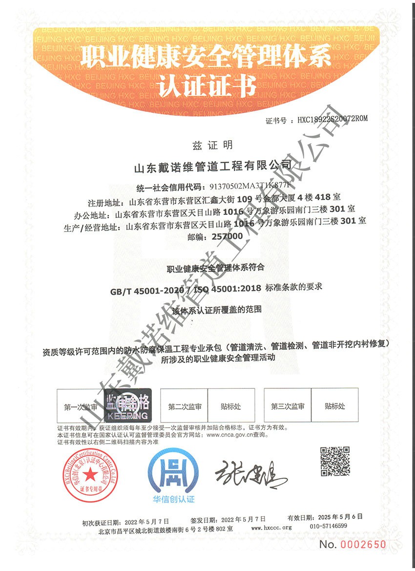 管道非開(kāi)挖修復(fù)工程服務(wù)企業(yè)資質(zhì)證書(shū)