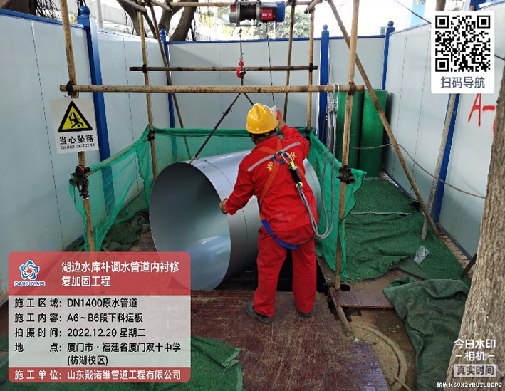 4.項(xiàng)目概況:湖邊水庫(kù)DN1400補(bǔ)調(diào)水管道全長(zhǎng)8709.5m,起點(diǎn)為高殿水廠。湖邊水庫(kù)補(bǔ)調(diào)水管道設(shè)計(jì)輸水能力20萬(wàn)m3/d,是保障廈門市島內(nèi)原水應(yīng)急供應(yīng)的重要管道。湖邊水庫(kù)補(bǔ)調(diào)水管道補(bǔ)調(diào)水管道自2010年1月投入運(yùn)行,部分路段管道多次發(fā)生漏水或破管事件,因此本次對(duì)爆管頻繁發(fā)生段管道予以修復(fù)。該現(xiàn)狀管管徑為DN1400,采用預(yù)應(yīng)力II 級(jí)鋼筋混凝土管(以下簡(jiǎn)稱混凝土管)、鋼管和球墨鑄鐵管埋地鋪設(shè),其中原管材為鋼管或球墨鑄鐵的管段本次不予以修復(fù)。由于混凝土管段多次發(fā)生管道破裂、脫節(jié)及沉降事件,因此本次對(duì)混凝土管段予以修復(fù),全長(zhǎng)3568.55m。采用非開挖方式內(nèi)襯不銹鋼更新修復(fù)。